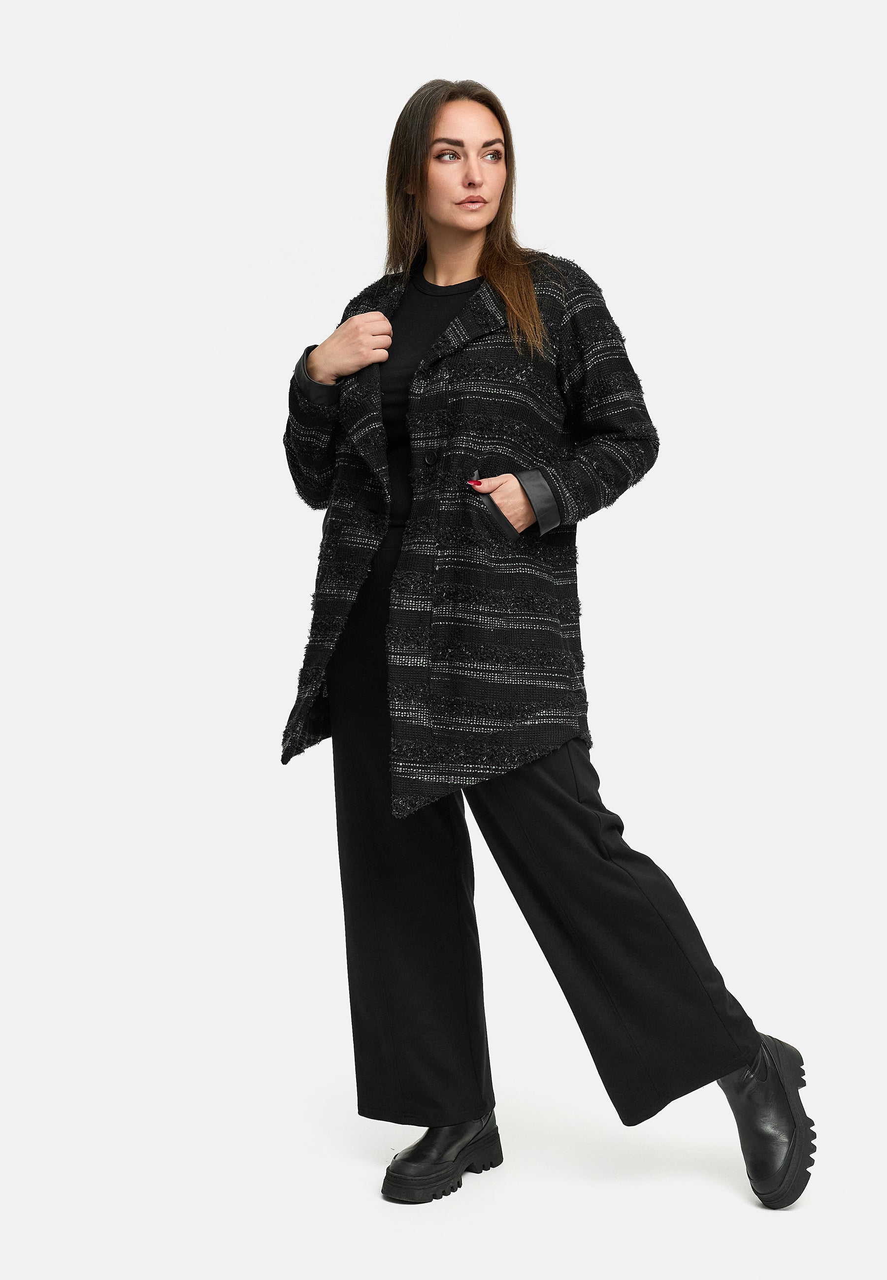 „Noelle“ vereint Komfort und Eleganz. Die strukturierte Streifenoptik mit feinem Schimmer verleiht der Jacke Tiefe, während der drapierte Kragen und der Ein-Knopf-Verschluss eine moderne, schmeichelnde Linie formen. Krempelst du die Ärmel, blitzt der glänzende Besatz hervor – ein kleiner, festlicher Twist.