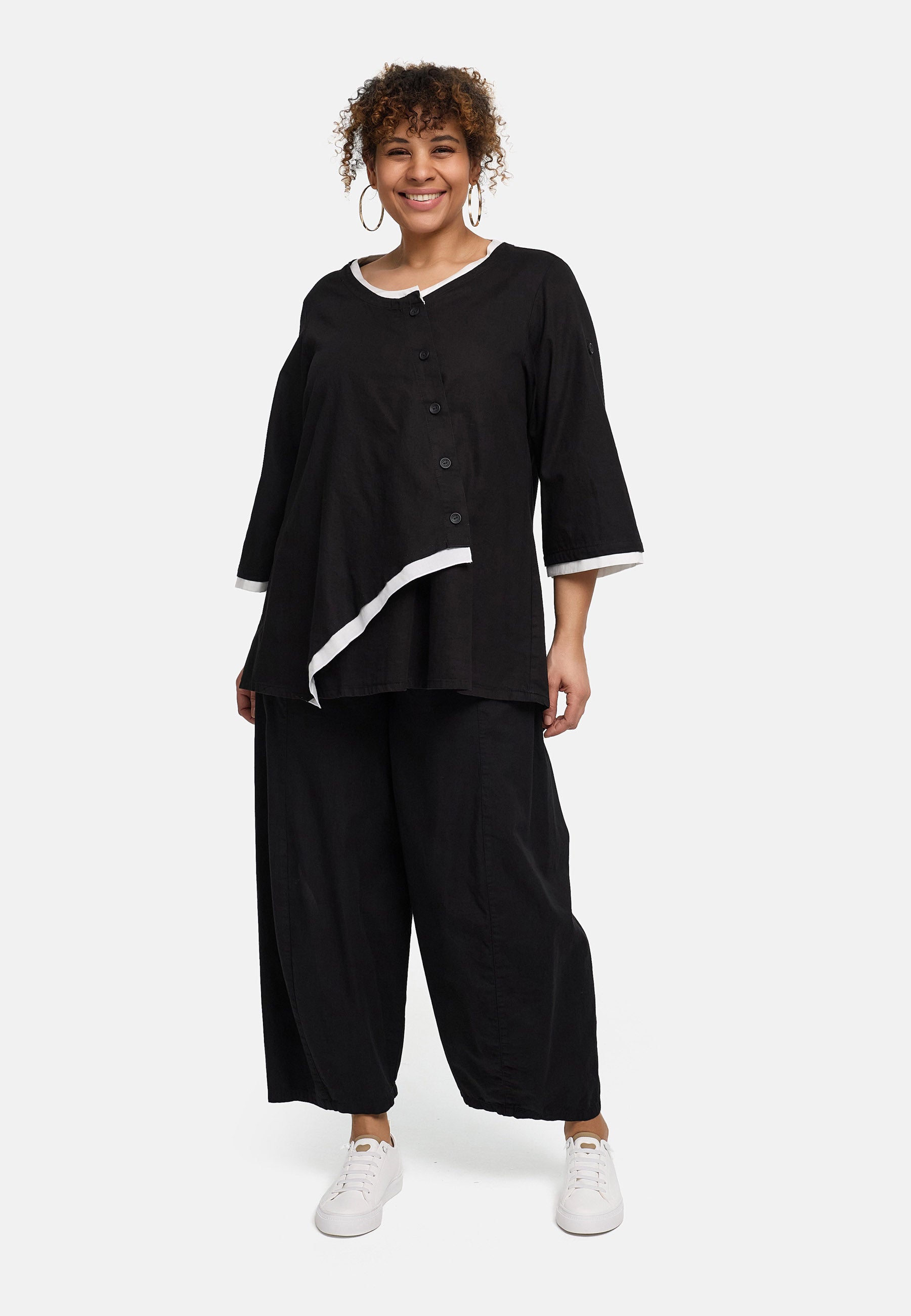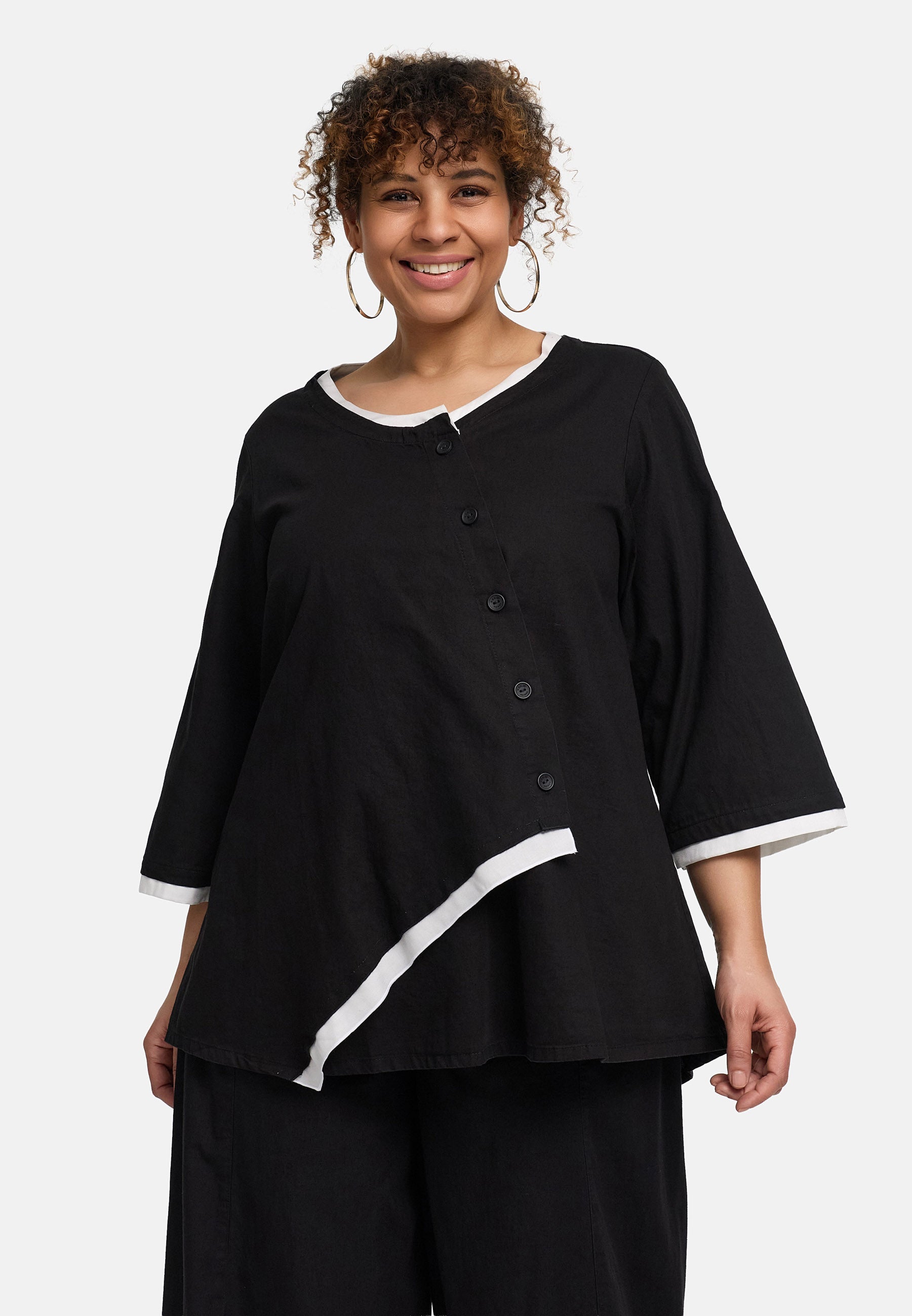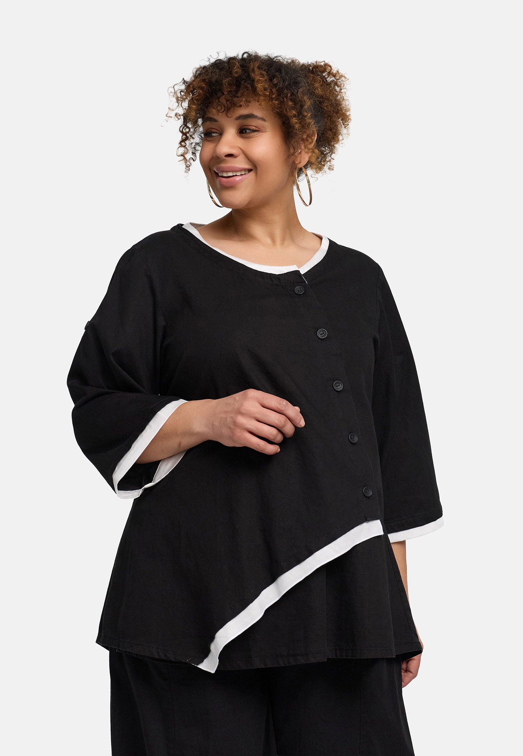 Wenn Basics ein Update bekommen, sieht es so aus: „Saria“ spielt mit klaren Linien und einer schrägen Knopfleiste, die dem Look Charakter gibt. Die 100% Baumwolle fühlt sich angenehm natürlich an, ist atmungsaktiv und macht jede Bewegung mit. Der Rundhalsausschnitt mit Kontrastkante rahmt dezent das Gesicht, während der leicht ausgestellte Schnitt locker über die Hüfte fällt. Aufschlag-Ärmel mit Riegel erlauben ein schnelles Umschlagen – perfekt, wenn der Tag von Meeting zu Café wechselt.