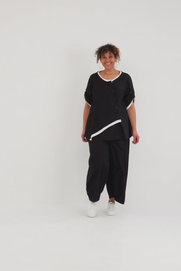 Die „Saria“ Bluse vereint puren Baumwollkomfort mit künstlerischer Asymmetrieluftig, figurumspielend und sofort besonders.