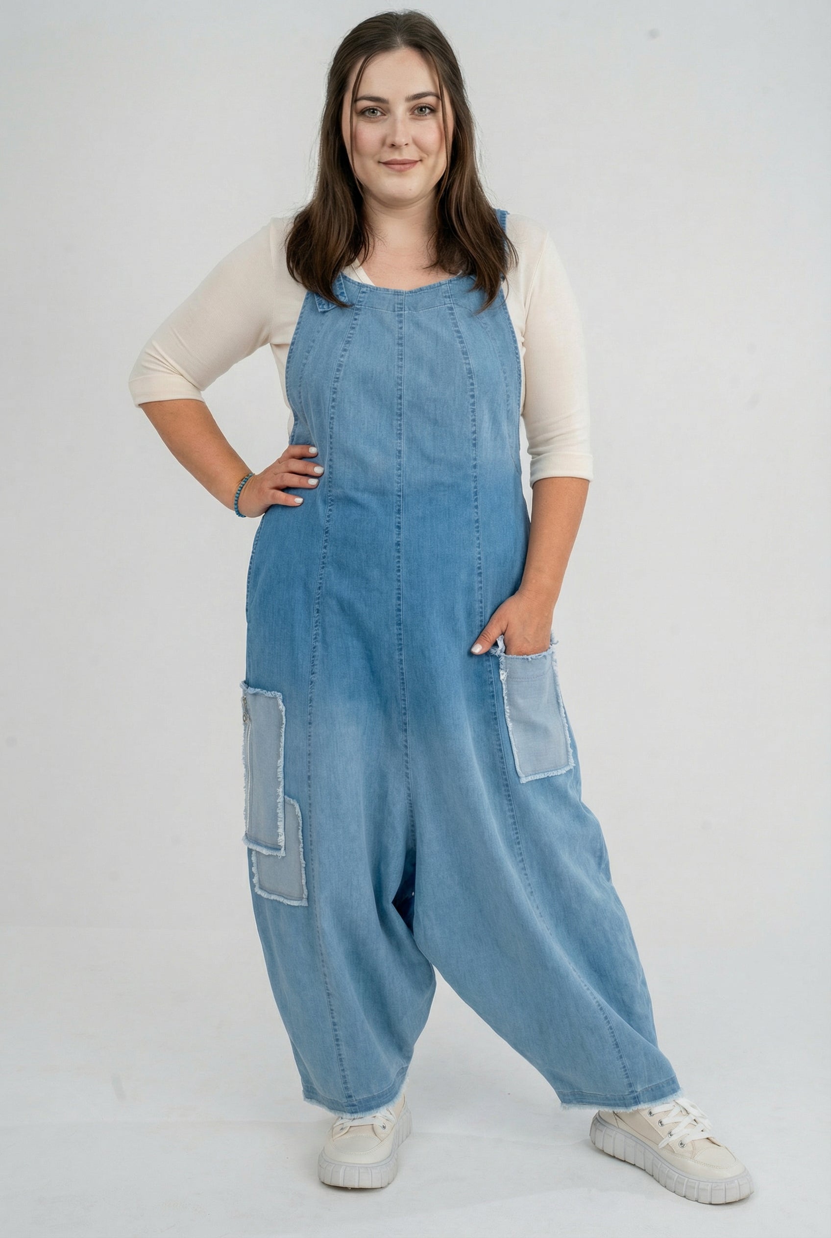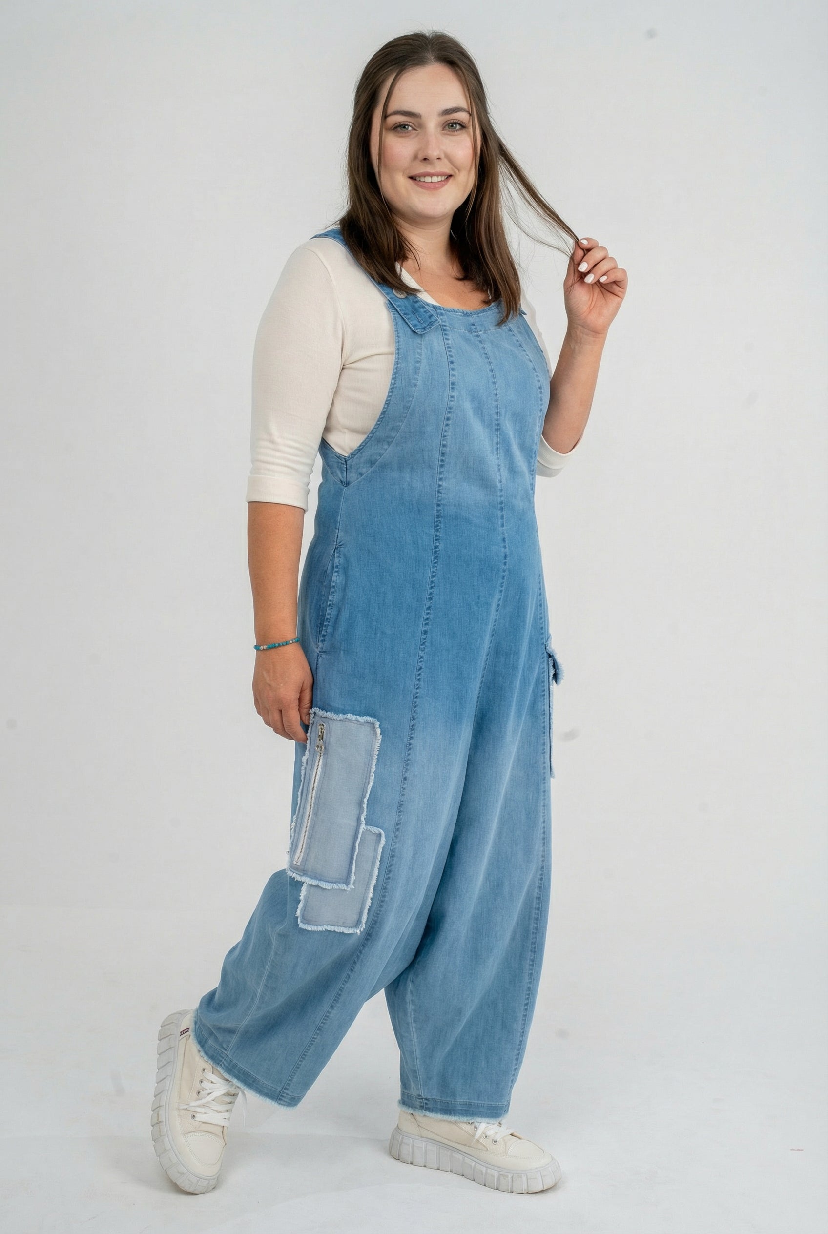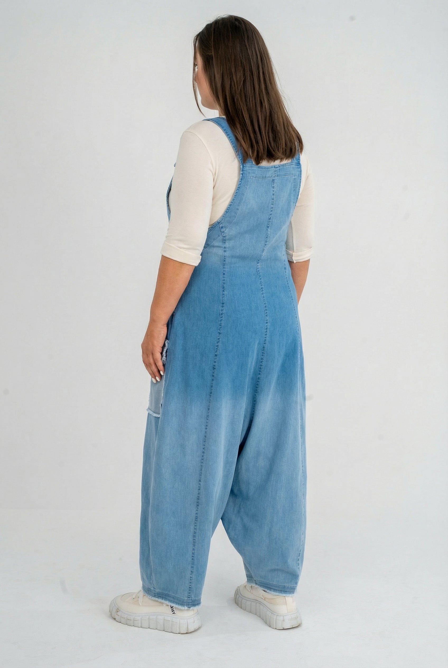 Lässig, leicht, ultrabequem: Die Sky Latzhose vereint soften Stretch-Denim mit moderner Ombre-Optik und coolen Patch-Details – ein Lieblingsstück für jeden Tag.